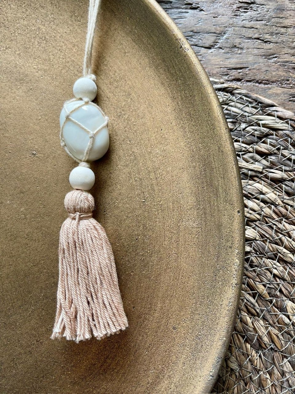 Breng kalmte en verfijning in huis met deze elegante hanger van witte jade. Deze steen staat symbool voor rust, harmonie en zuiverheid. Witte jade helpt negatieve energie te verzachten en creëert een gevoel van innerlijke vrede – ideaal voor elke plek waar je tot rust wilt komen.